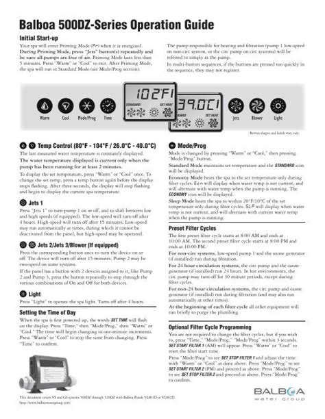 Read Online Balboa 500dz Series Operation Guide Doc Internet Archive